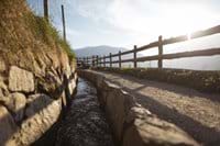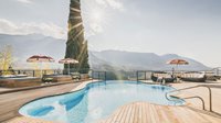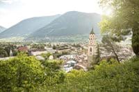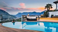 Von den Panoramaterrassen eröffnet sich ein Ausblick, der verzaubert: majestätische Berge, sanfte Weinberge und das mediterrane Flair Merans verschmelzen zu einer einzigartigen Komposition aus alpinem Charakter und südlichem Charme. Und nicht all zu weit entfernt ragen die wilden Gipfel der Dolomiten empor – ein UNESCO-Weltnaturerbe, das begeistert.